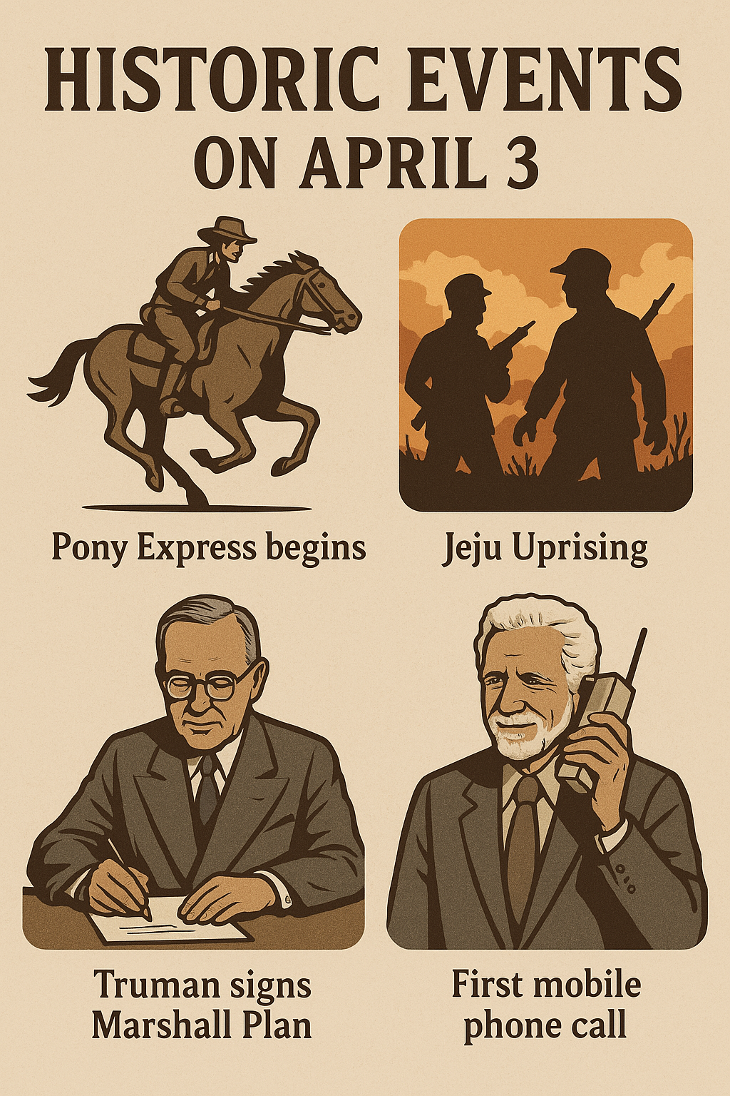 제주 4.3사건 외에 무슨 일이 있었을까?목차제주 4.3사건 (1948년)그 외 4월 3일의 흥미로운 역사적 사건들마무리제주 4.3사건 (1948년)제주 4.3사건은 1948년 4월 3일부터 1954년 9월 21일까지 제주도에서 발생한 대규모 민간인 학살과 무력 충돌 사건입니다. 대한민국 정부 수립 과정에서 벌어진 이 사건은 미군정과 남한 단독정부 수립에 반대하는 남로당의 봉기로 시작되었습니다. 이후 진압 과정에서 수많은 민간인들이 희생되었고, 이 사건은 오랜 기간 동안 금기시되었다가 점차 진실이 밝혀지기 시작했습니다. 오늘날에는 희생자들을 기리고 사건의 교훈을 되새기기 위한 다양한 추모 행사들이 열리고 있습니다. 제주 4.3사건 공식 사이트로 이동하기 그 외 4월 3일의 흥미로운 역사적 사건들1860년..
